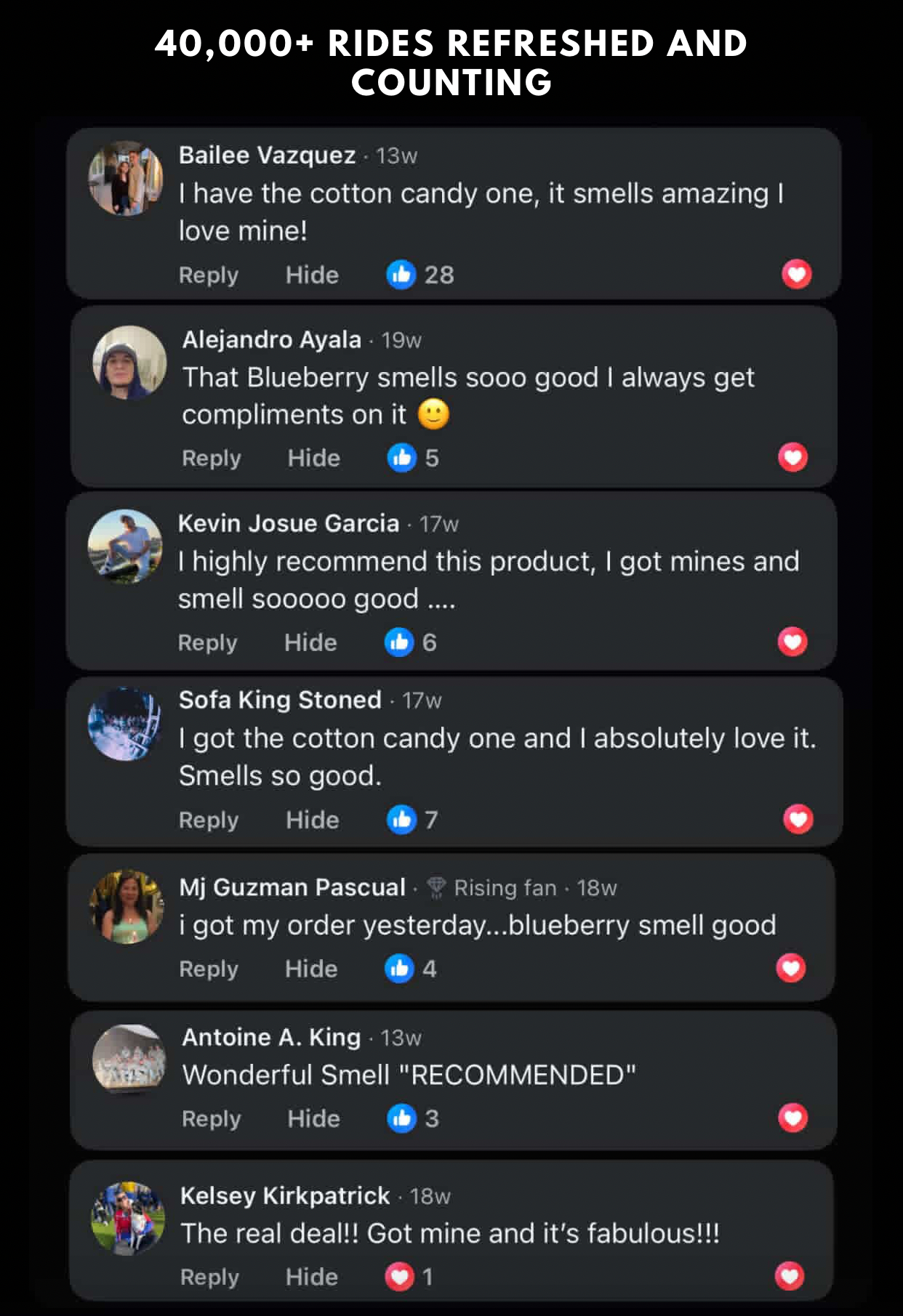No chemicals. No toxins. No artificial perfumes. Just clean, natural aromas made to elevate every drive and that's what makes us different than any other brands.